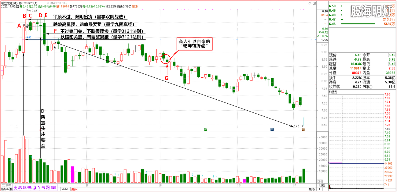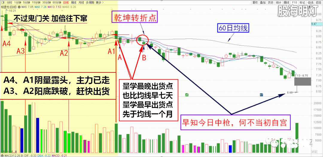 高教授在文章中也讲的明白:A点就可以出货,A点并不是乾坤转折点,可见乾坤转折点并不是出货点。
