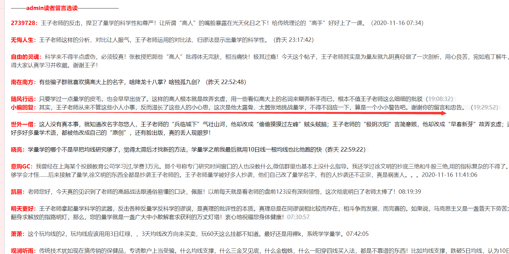2017年到2018年,王子在论坛上多次高声疾呼牛市来了。结果让那些缴费的学员亏得惨不忍睹。特训班学员们最后总结出了著名的结论:学了量学,亏的更快!王子对全国的人民群众说,传统技术,他全国第二名。可是他不能正确理解,运用均线,所以他总是在(大是大非面前)重要的趋势转折的地方,摔得鼻青脸肿。偷换概念,混淆是非,不懂装懂是王子的惯用剂量和长处。这种道貌岸然的为人师表,佩服佩服!